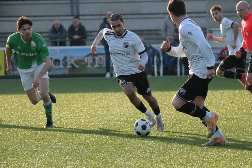 Nieuw Lekkerland leek direct de gelijkmaker te produceren, maar het afstandsschot stuiterde via de onderkant van de lat het veld weer in.