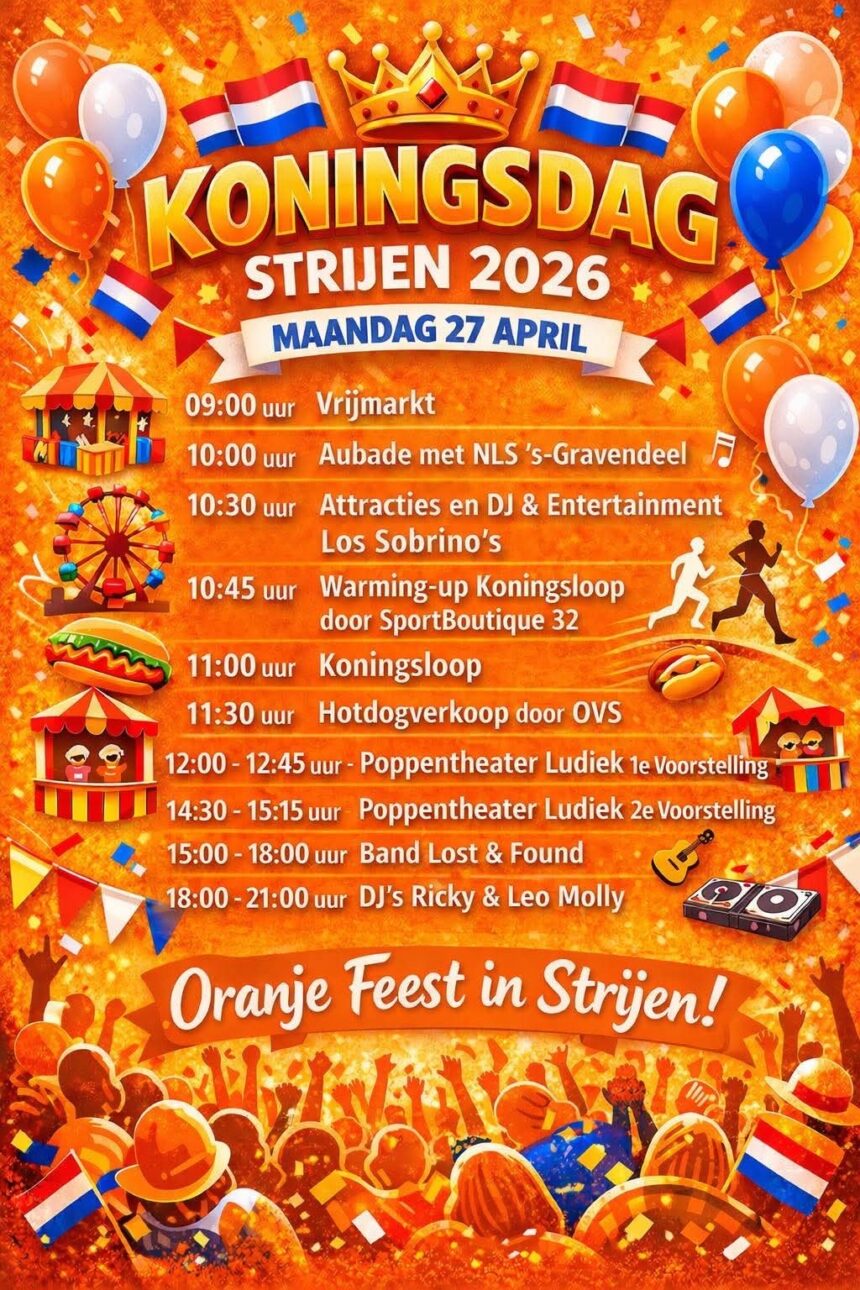 STRIJEN – Op maandag 27 april 2026 verandert de Kaai in Strijen weer in een bruisend oranje feestterrein tijdens Koningsdag. Met een uitgebreid programma vol muziek, activiteiten en gezelligheid belooft het een dag te worden voor jong en oud.