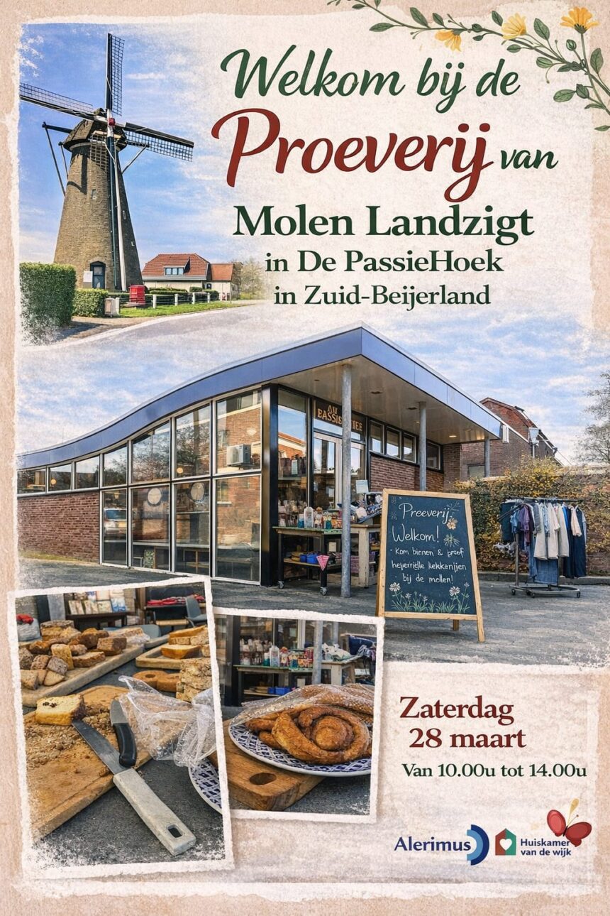 De proeverij vindt plaats in De PassieHoek in Zuid-Beijerland en duurt van 10.00 tot 14.00 uur. Bezoekers zijn van harte welkom om te komen proeven en kennismaken met de ambachtelijke producten uit de molen.