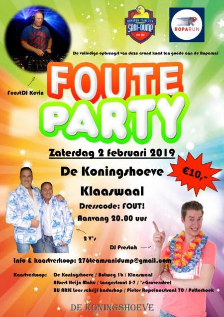 Foute Party met Feest DJ Prestah, Feest DJ Kevin en de 2 v’s in de Koningshoeve ter bate van de Roparun