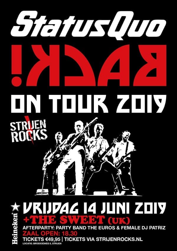 Geen Golden Earring maar Status Quo, The Sweet, Party Band the Euro’s en DJ Patriz komen naar Strijen
