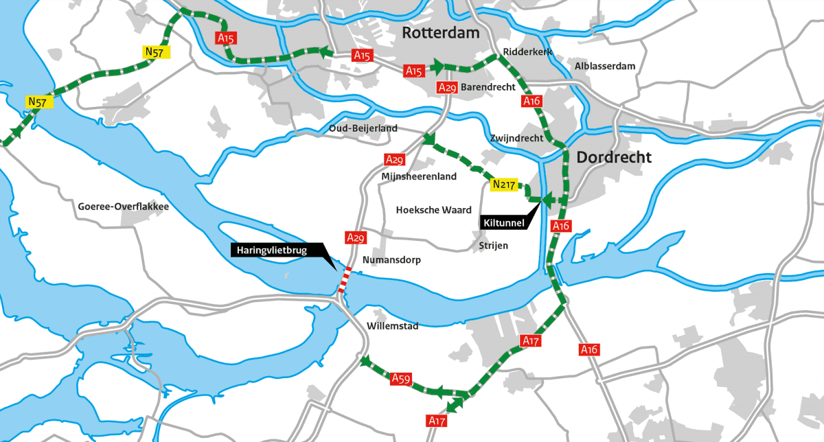 Afsluiting: Rijkswaterstaat voert dit weekend onderhoudswerkzaamheden uit aan de Haringvlietbrug (A29) richting Bergen Op Zoom