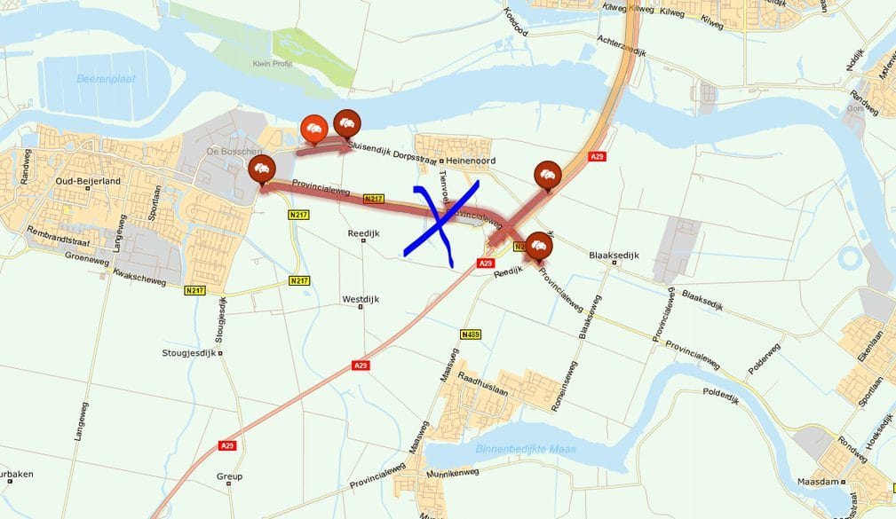 N217 tussen Oud-Beijerland en Puttershoek is dicht vanwege een ongeluk