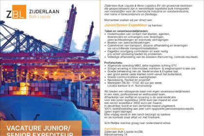 Vacature: Junior/Senior Expediteur bij Zijderlaan Bulk Liquids