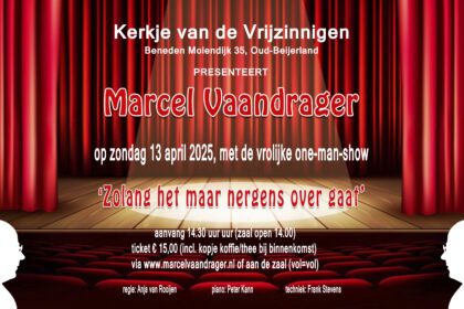 Marcel Vaandrager komt naar het kerkje van de Vrijzinnigen in Oud-Beijerland!