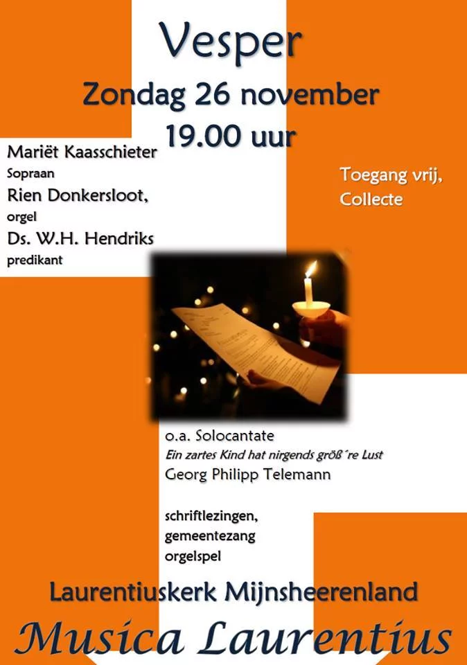 Vesper met cantate van Telemann in de Laurentiuskerk