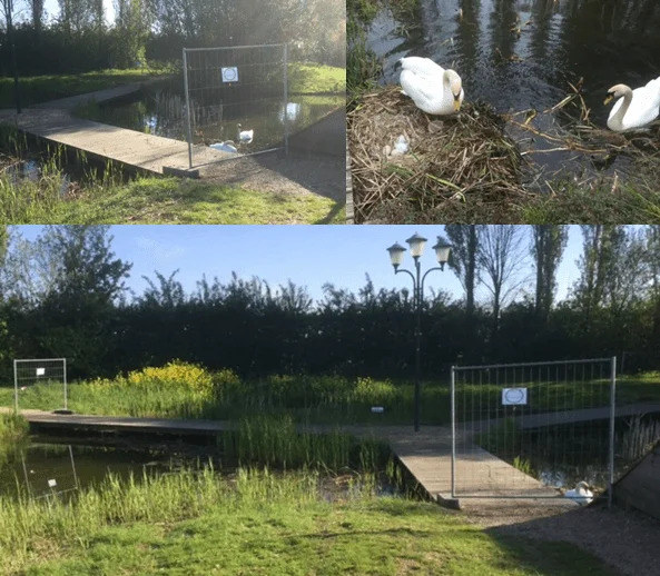Bruggetje in het Park in Mijnsheerenland tijdelijk afgesloten vanwege broedende zwanen