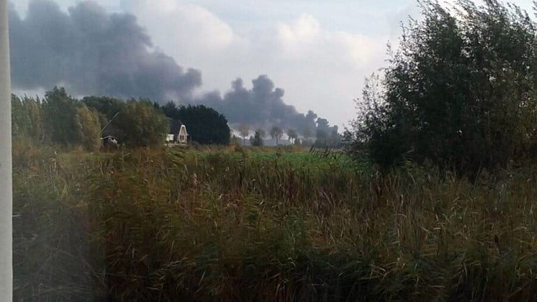 Grote brand bij aardappelschuur met asbestdak aan de Lane in Strijen