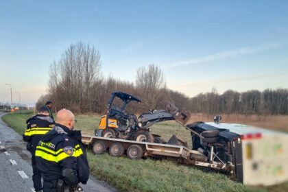 Op de Hogeweg in Zuid-Beijerland is een bedrijfsbus met aanhanger van de…