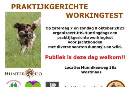 Praktijkgerichte workingtest Jachthondenschool Huntingdogs in Westmaas op 7 en 8 oktober