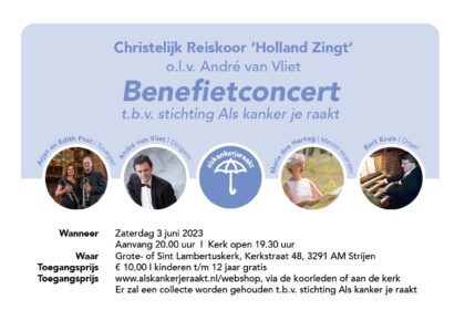 Benefietconcert in de Lambertuskerk Strijen ten bate van de stichting Als kanker je raakt