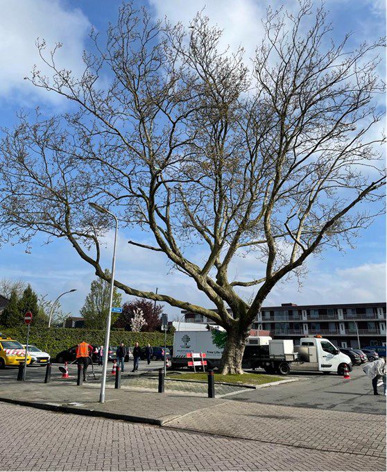 De ruim 100 jaar oude plataan op het parkeerterrein aan de Oude…