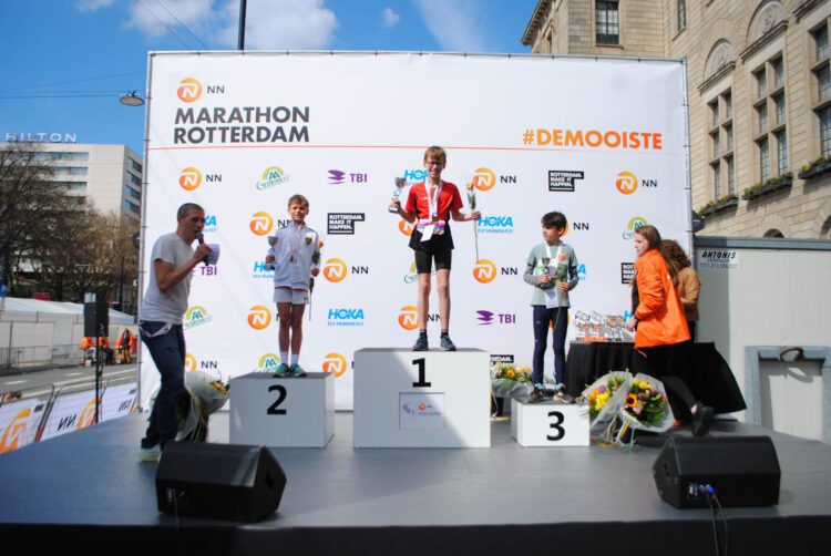 Thijmen den Otter uit Puttershoek pakt 1e plaats op de Kidsrun van de Rotterdam Marathon