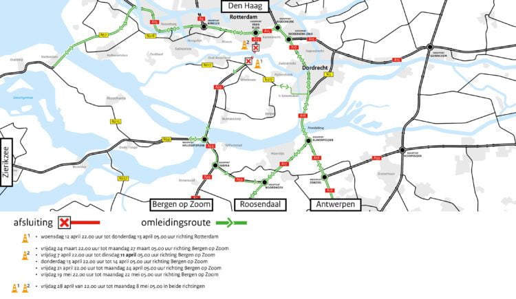 Weekendafsluiting Heinenoordtunnel A29 richting Hoeksche Waard / Bergen op Zoom van vrijdag 24 maart tot maandag 27 maart