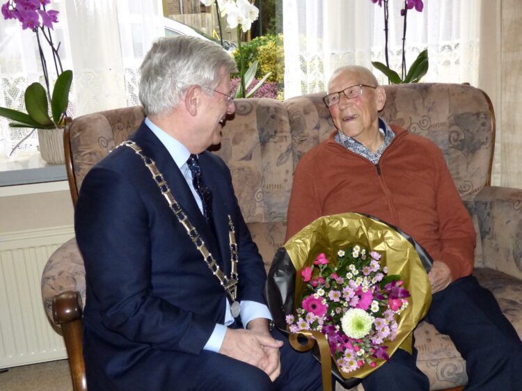 Burgemeester Aptroot feliciteert 100-jarige Hannes Vermoen uit ’s-Gravendeel