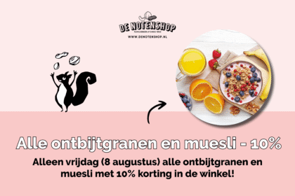 Alleen vrijdag 8 augustus: 10% korting op alle ontbijtgranen en muesli in de winkel van De Notenshop!