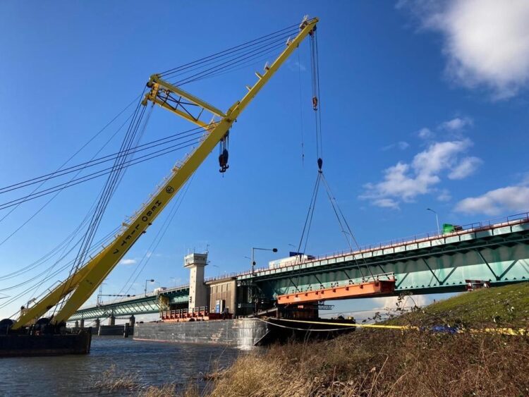 Hulpbrug aangelegd naast de Haringvlietbrug voor eerste werkzaamheden
