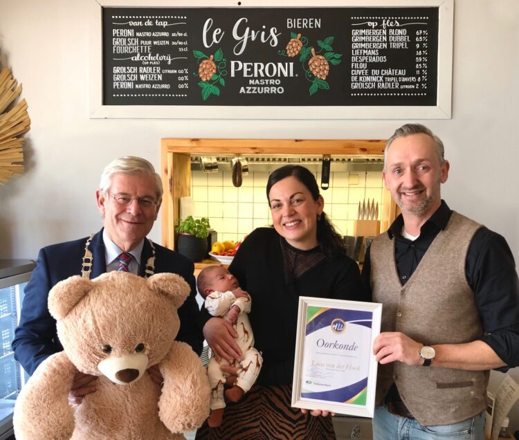 Burgemeester Aptroot feliciteert ouders eerste Hoeksche Waardse baby van 2023