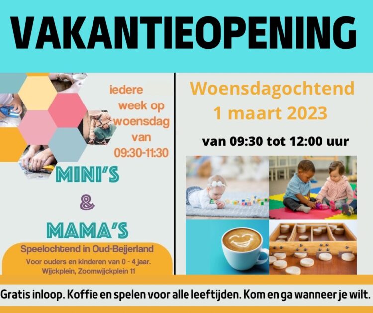 Vakantieopening van Mini’s en Mama’s op woensdag 1 maart in Oud-Beijerland