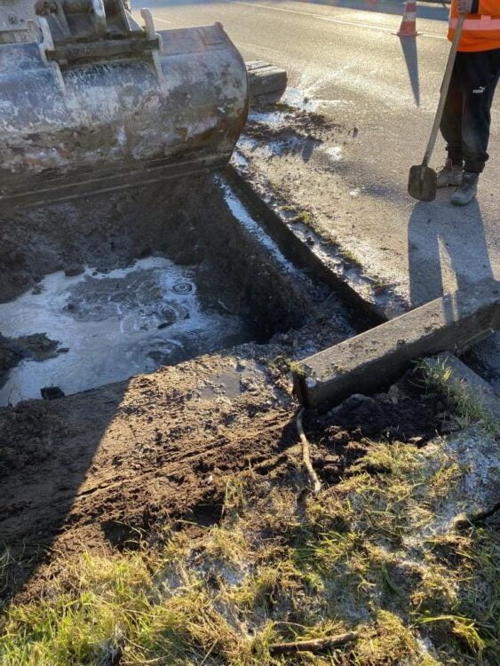 Lekkage aan persleiding rioolgemaal Klaaswaal aan de Rijksstraatweg