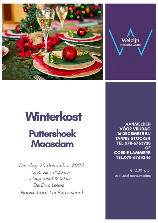 Dinsdag 20 december is er een kerstwinterkost in De Drie Lelies, Narvikstraat…