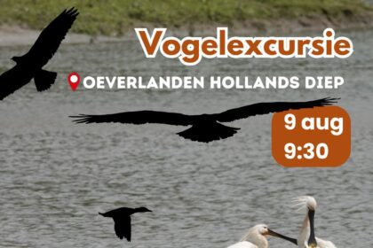 Vogelexcursie op zaterdag 9 augustus in natuurgebied de Oeverlanden in Strijensas bij het Hollands Diep