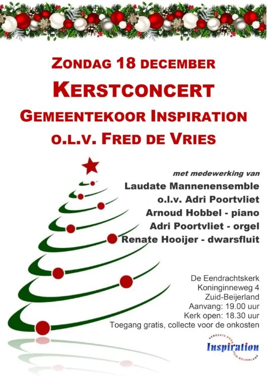 Kerstconcert in de Eendrachtskerk Zuid-Beijerland op zondag 18 december