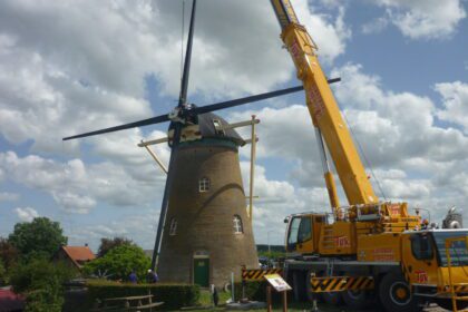 Nieuwe wieken en staartwerk geplaatst op korenmolen De Lelie in Puttershoek