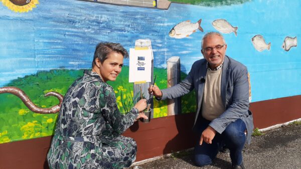 Waterschap onthult muurschildering van kunstenares Ida Wiersma over zwerfafval bij gemaal de Eendracht in Zuid-Beijerland