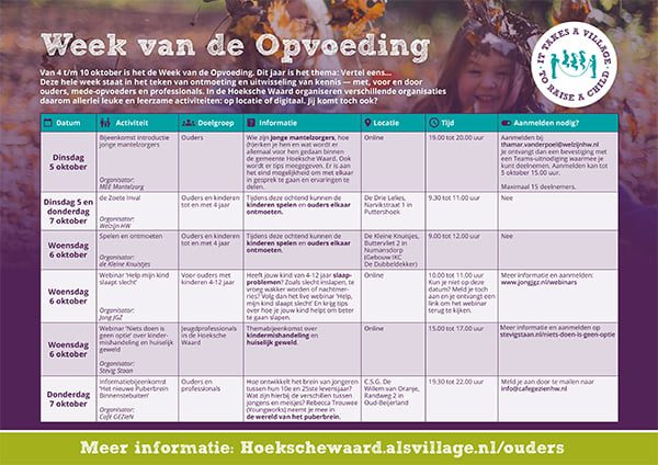 Week van de Opvoeding van 4 tot 10 oktober in de Hoeksche Waard