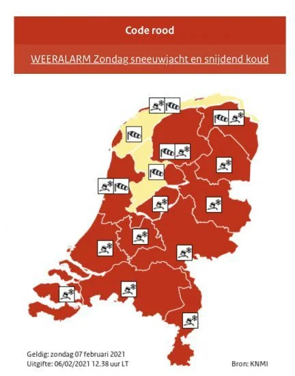 Voor heel Nederland heeft het KNMI voor zondag code rood afgegeven. Dat…