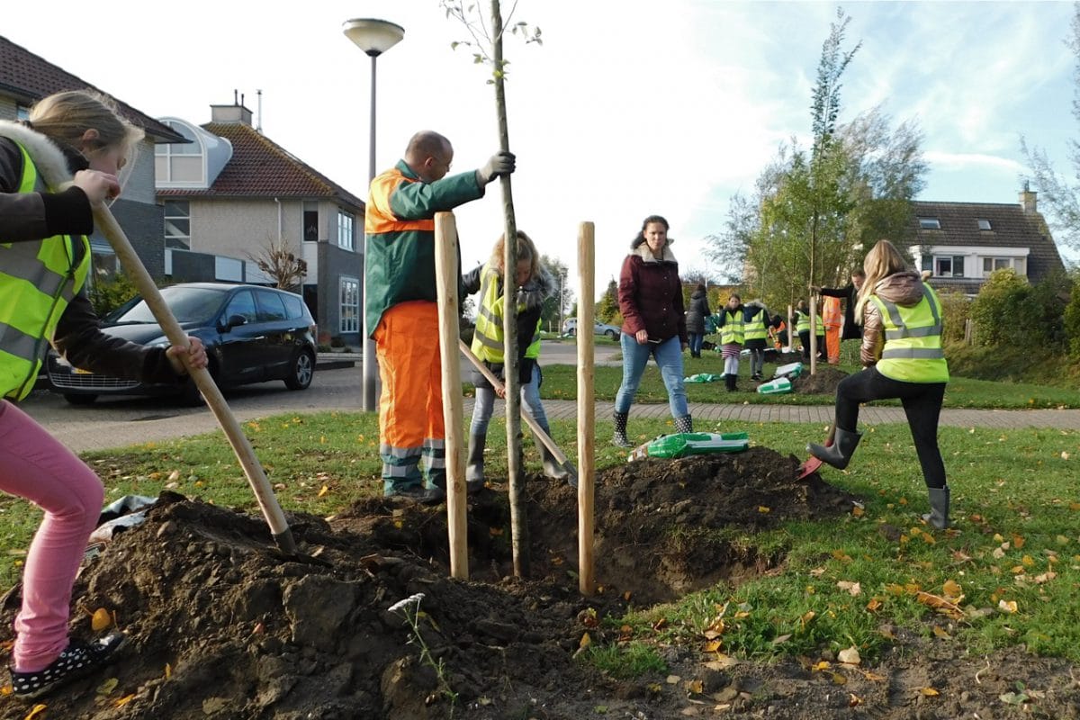 Ter hoogte van de Lambertusstraat en in de Stoop van Strijenstraat werden in de ochtend van de 31ste oktober zo’n 40 jonge bomen aangeplant door 34 leerlingen van De Meerwaarde. De wethouder stak zelf ook nog de handen uit de mouwen bij de aanplant van de allereerste boom. Het merendeel van de 40 bomen, die bij Lambertusstraat en de Stoop van Strijenstraat de grond in zijn gegaan zijn iepen. (Uiteraard een soort die resistent is tegen de iepziekte.) De overige bomen zijn sierperen. Na afloop van de werkzaamheden was er nog iets te drinken, een appel en een presentje voor de kinderen in de vorm van een vogelhuisje.