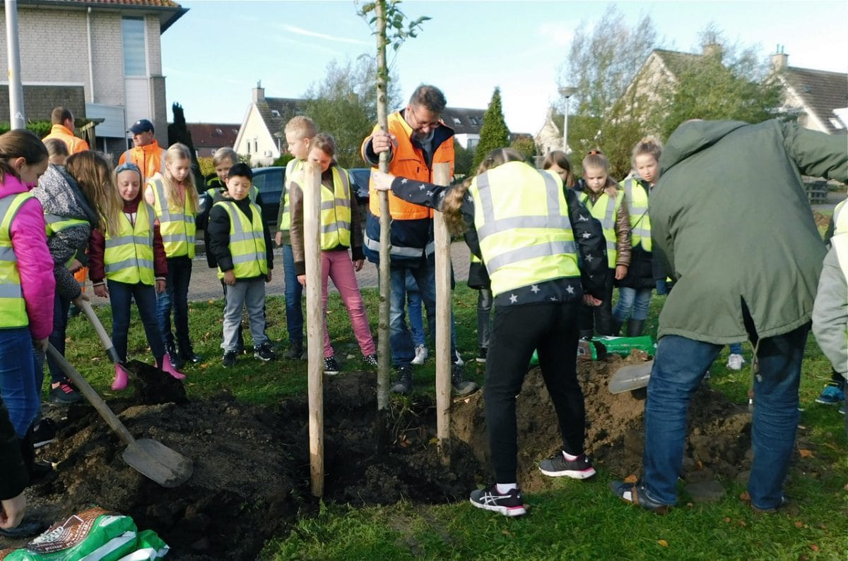 Na een toespraak van wethouder Wilko van Tilborg, die de leerlingen van de Obs De Meerwaarde er op wees dat bomen niet alleen mooi zijn ter verfraaiing van het landschap of een tuin, maar ook belangrijk zijn voor andere zaken, zoals luchtkwaliteit ging men aan de slag.