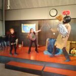 De kinderen waren allemaal verkleed met kleren van beroepen zoals ze later zouden willen worden en vertelden hierover. Ze hadden ook vragen voor de burgemeester. Bijvoorbeeld waarom hij eigenlijk een ambtsketen draagt en wat er allemaal opstaat. De burgemeester vertelde er veel over en kreeg de zelfgemaakte ambtsketen door de kinderen omgehangen. Ook las hij voor uit een heel toepasselijk boek van Michel Linthorst: ‘Over een hondje dat tegen de broek van de burgemeester plaste’, een schitterend boek met tekeningen van Angela Damen. De kinderen luisterden ademloos en genoten ondertussen van een lekker stuk ontbijtkoek dat de Ouderraad had uitgedeeld.