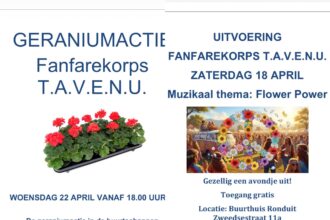 Geraniumactie en uitvoering Fanfarekorps T.A.V.E.N.U. in Schenkeldijk en ’s-Gravendeel