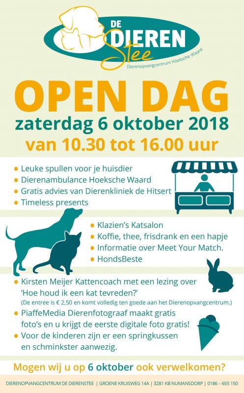 Open dag Dierenopvangcentrum De Dierenstee op zaterdag 6 oktober 2018