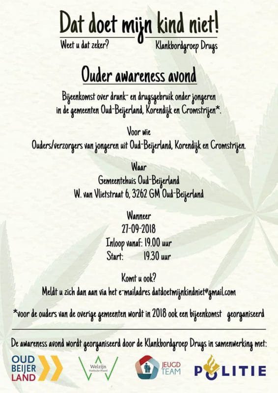 Bijeenkomst over drank- en drugsgebruik onder jongeren in Oud-Beijerland