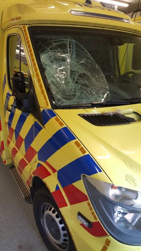 Ambulance in botsing met opvliegende ganzen aan de Hoekseweg in Strijen