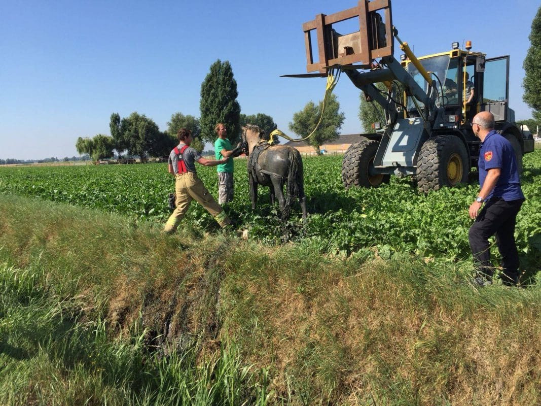 Paard in de sloot tussen de Weelsedijk en Wielweg in Strijen