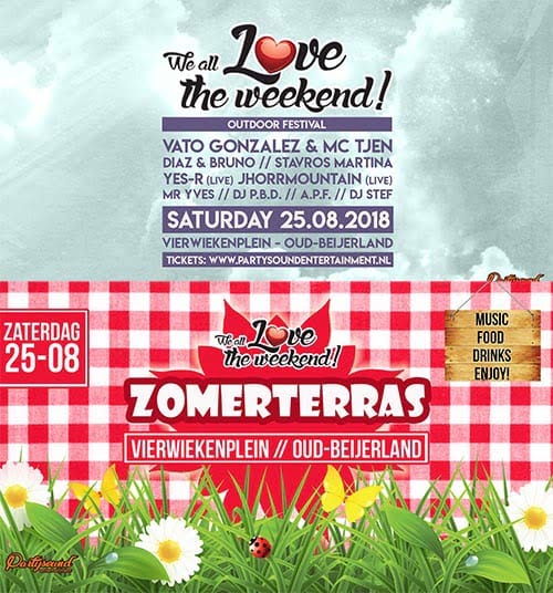 Zomerterras & We All Love The Weekend Outdoor met vele artiesten zoals o.a. Vato Gonzalez & MC Tjen en rapper YES-R op het Vierwiekenplein Oud-beijerland