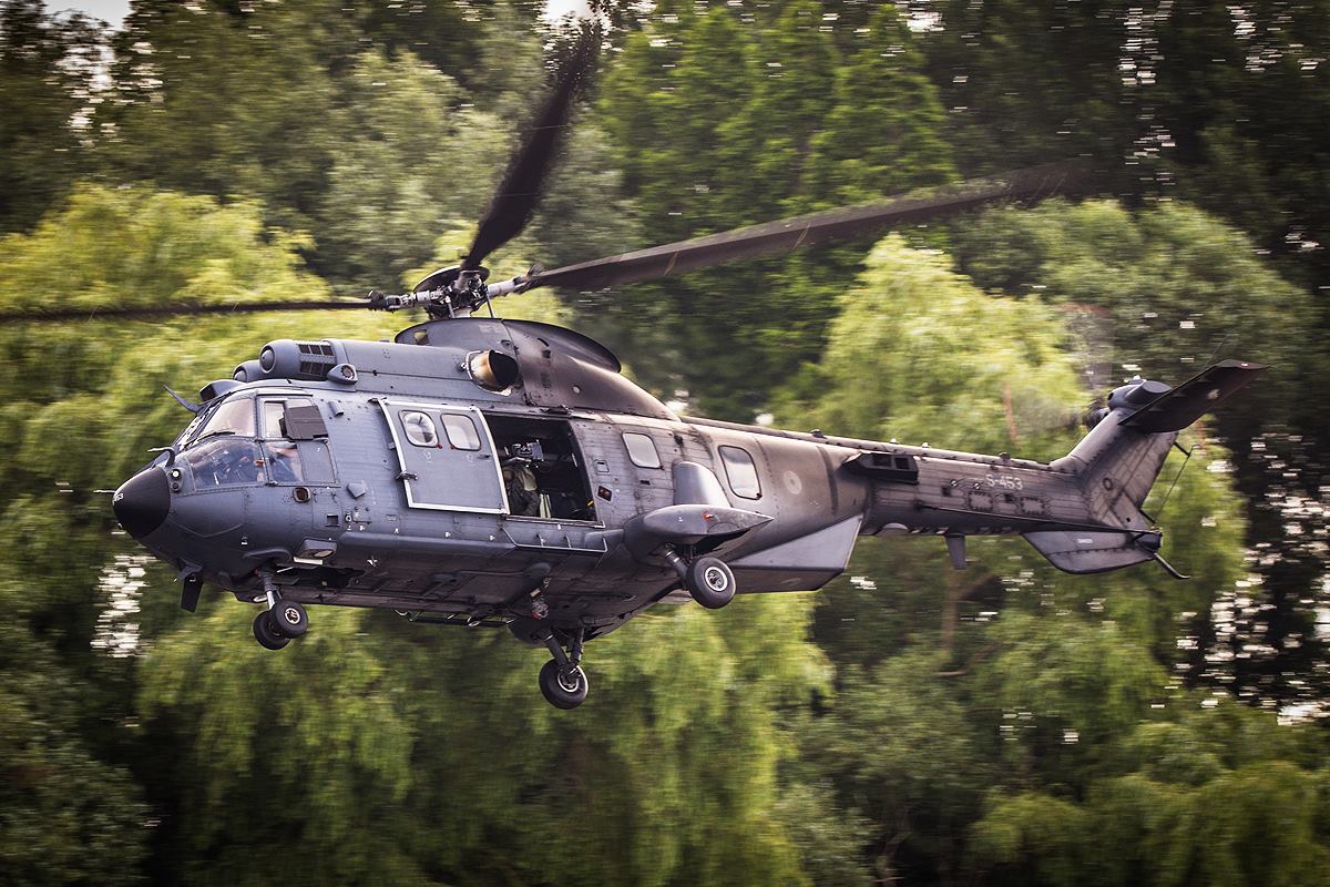 Maasdam - Een Cougar een gevechtshelikopkter van het "Defensie Helikopter Commando" trainde…