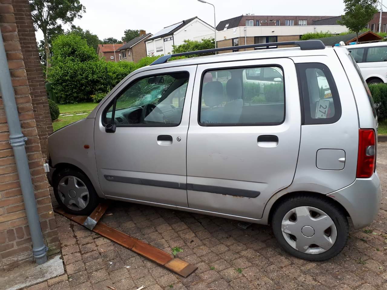 87 jarige Vrouw trapt gas in in plaats van rem en komt tegen hek en woning