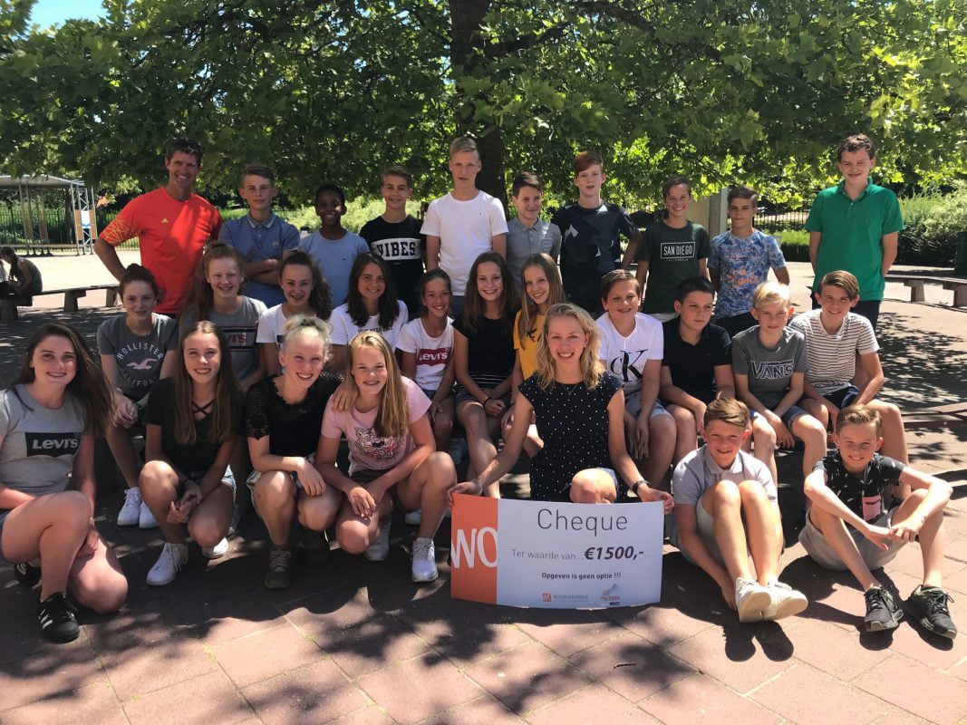 Mooie cheque voor sportieve oud-leerlinge, marathonschaatster en wielrenster Iris van der Stelt