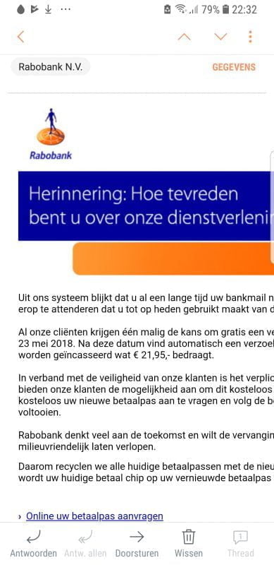 Let op als je een e-mail ontvangt waarin staat dat je Rabobankpas…