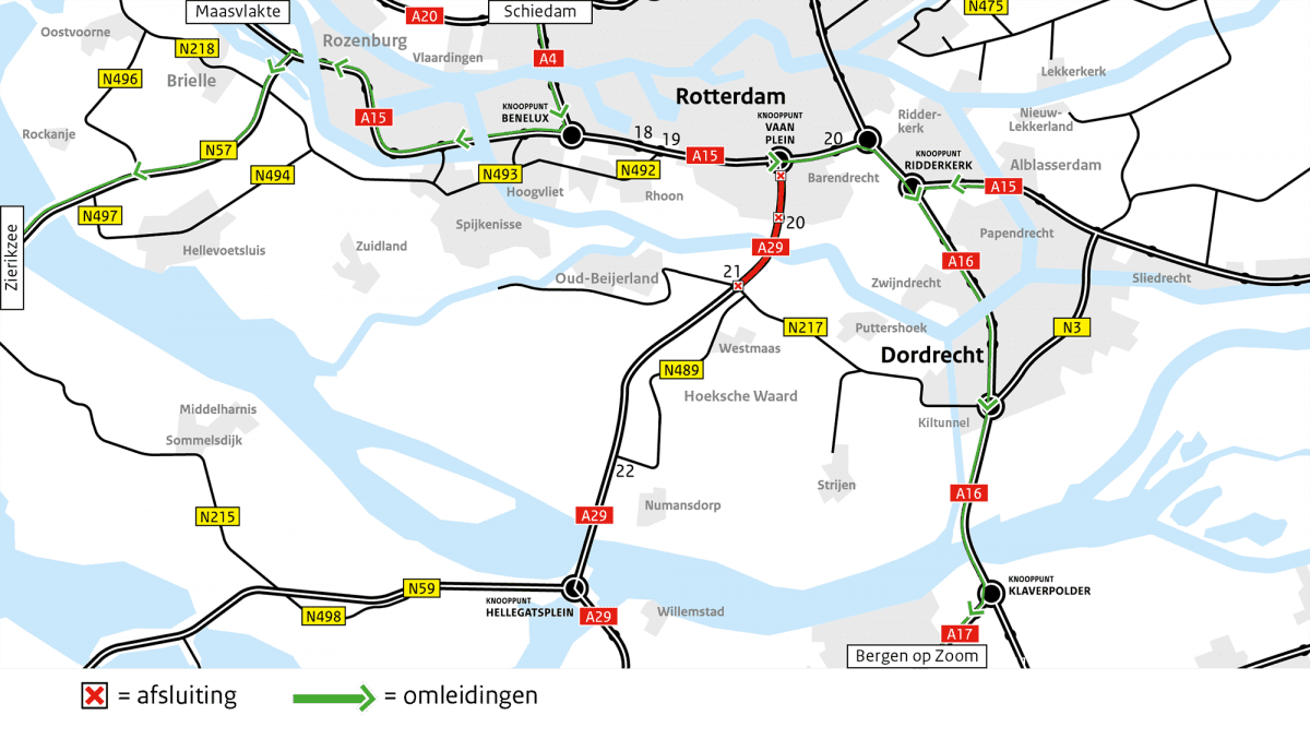 A29: weekendafsluitingen 11-14 mei en 1-4 juni 2018