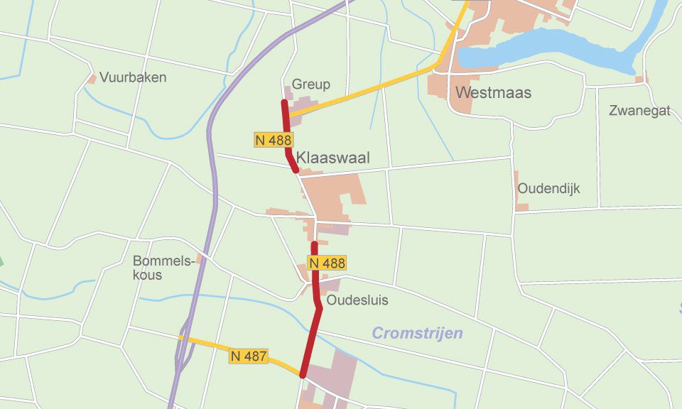 Cromstrijen - Vanwege werkzaamheden wordt de N488 ter hoogte van het kruispunt…