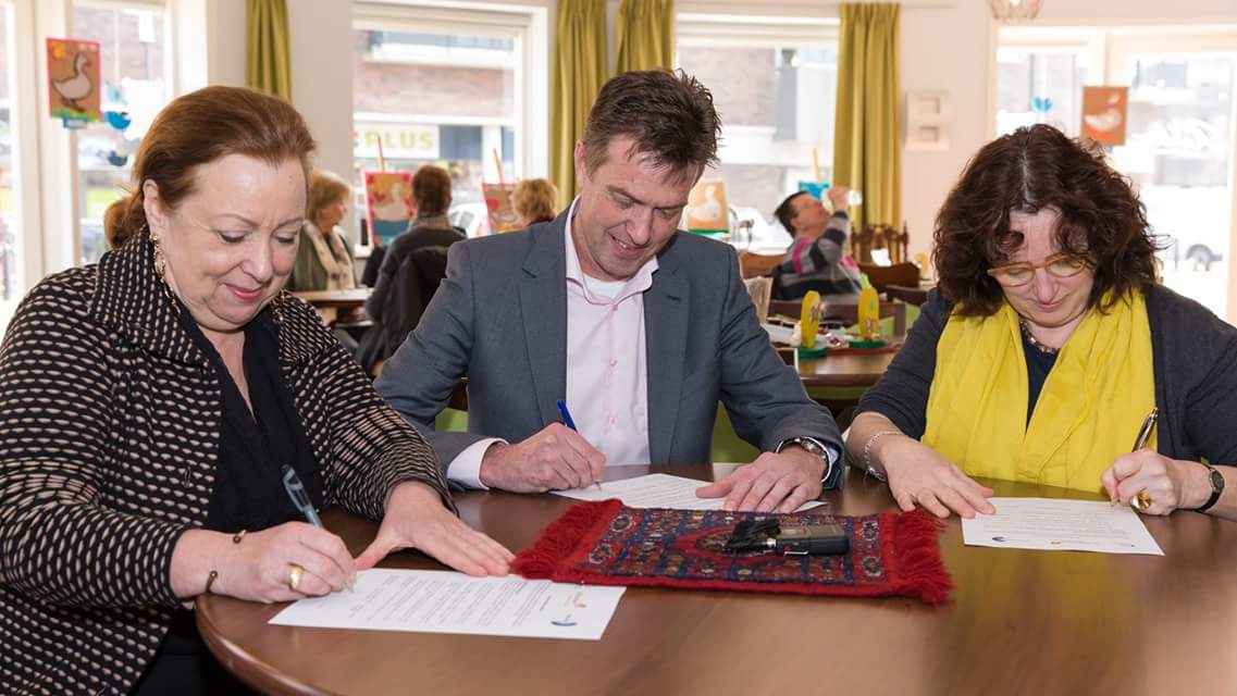 Ondertekening overeenkomst verhuizing Bibliotheek Numansdorp naar woonzorgcomplex De Buitensluis.