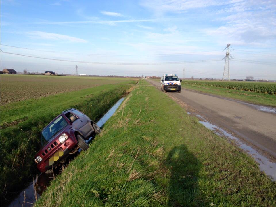 Door gladde berm zo in de greppel