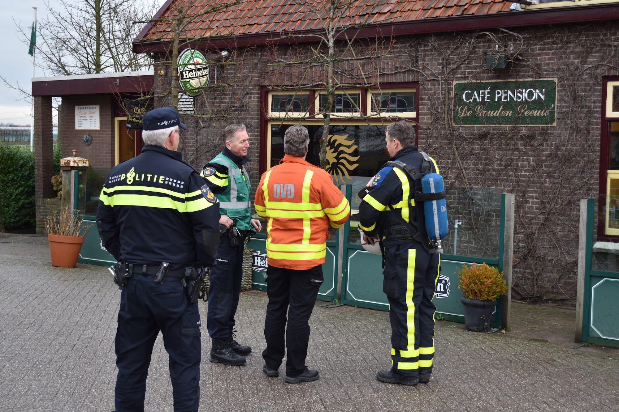 Massale uitruk Politie en Brandweer voor klein vuurtje met veel rook bij Cafe Pension de Gouden Leeuw in Maasdam