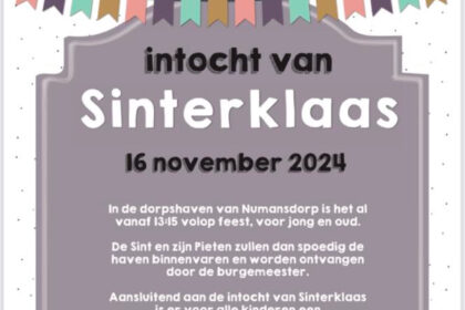 Op zaterdag 16 november 2024 verwelkomen we Sinterklaas en zijn Pieten in…